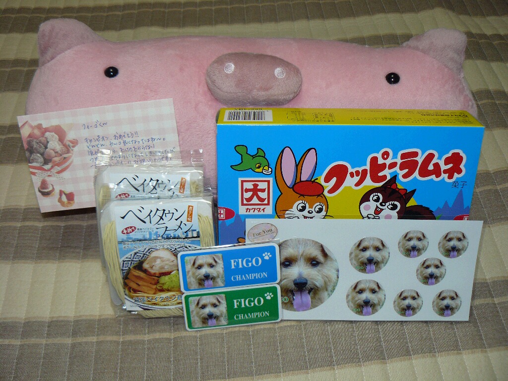 ゆうこさまからフィーゴのチャンピオンのお祝いに可愛い面白ろ?グッズをいただきました~