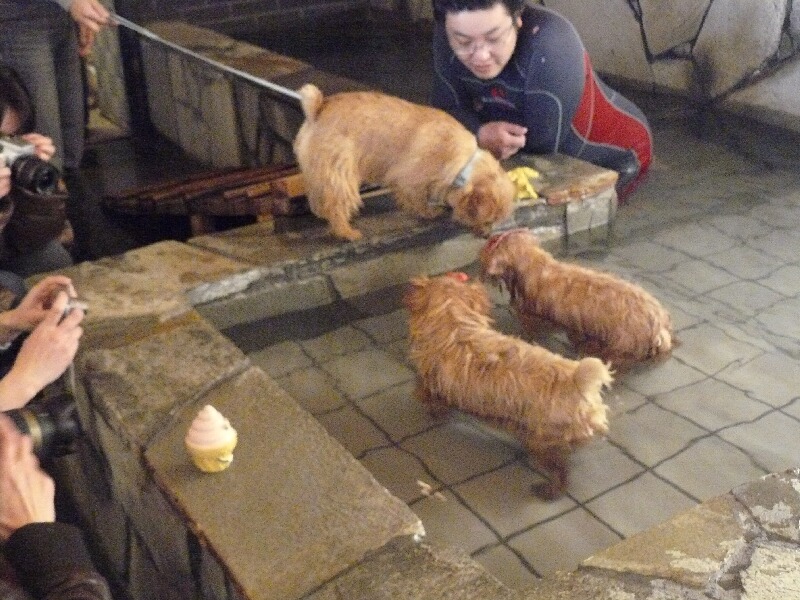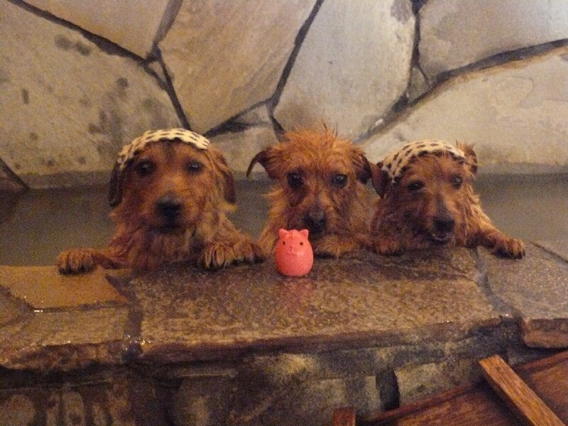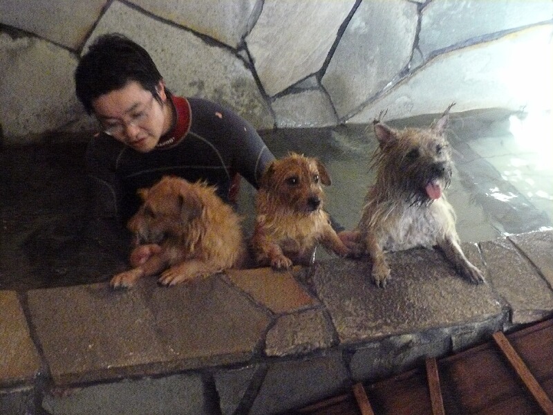 ベティちゃんとさくらちゃんが温泉に入っていると、コタくんがやってきました~
