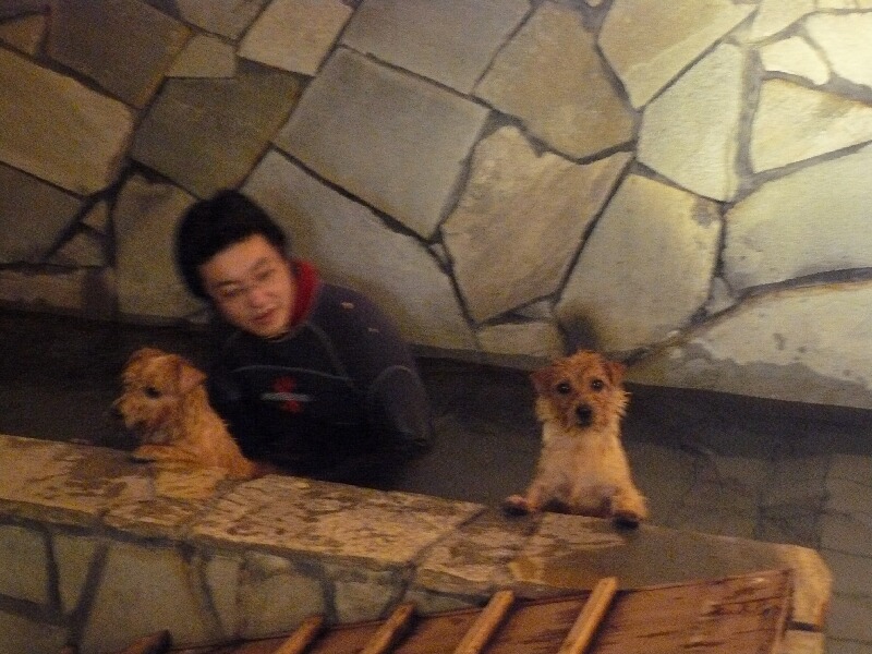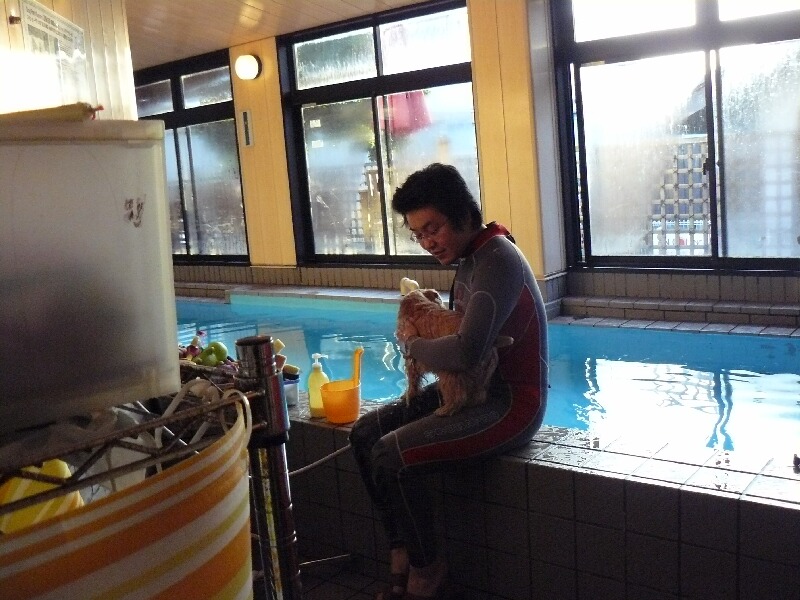 泳いだ後は、店長さんと温か~~い温泉へ