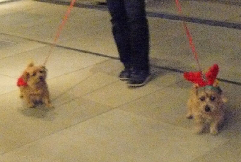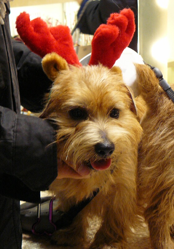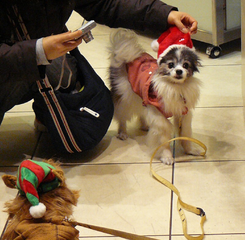 通り過ぎる人々が、可愛い~トナカイさんやサンタさんに釘付けです