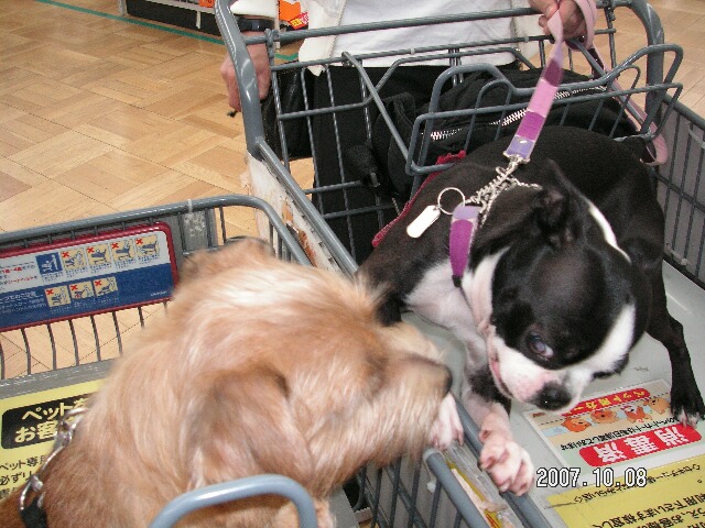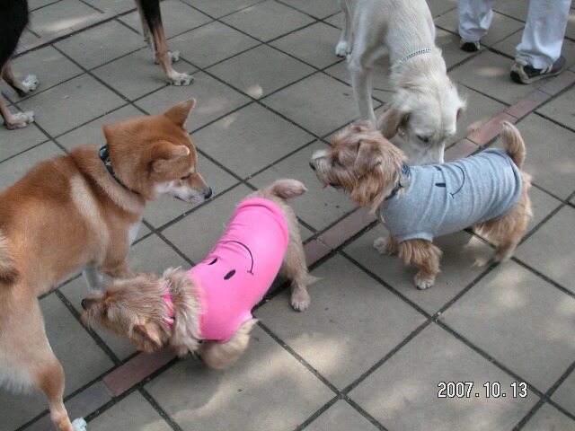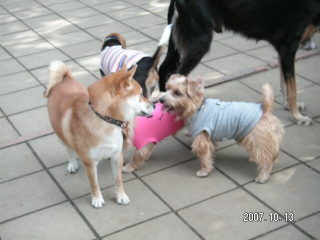 フィーゴ、シバ犬のお友達をずーとっ見てます