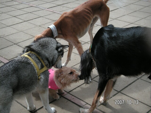 さっそくヘレンは大きなワンちゃんたちに全身でご挨拶