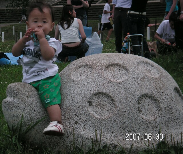 まずは、カメさんの上でハイ・ポーズ