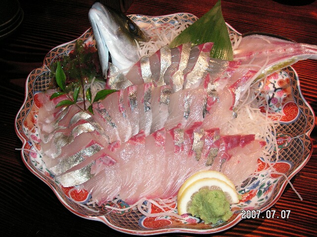 これが、パパが釣ったシマアジのお造りです。でもすごいボリューム