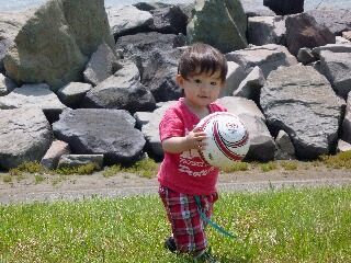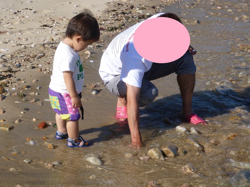 太郎ちちに遊んでもらうR♪ 初うみでした。