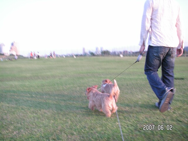 ご用事を済ませ帰ってきたパパママ。夕方になってしまったけどさっそくお散歩に行きましょ