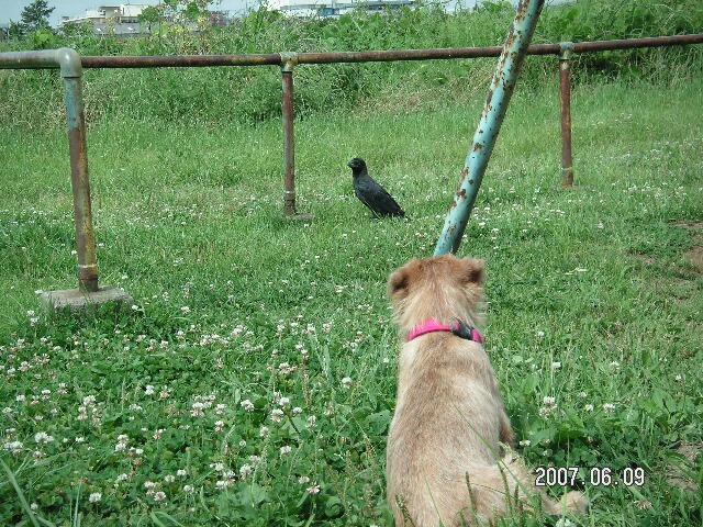 実はこのカラス、どうやら飛べないみたい。可哀想だね